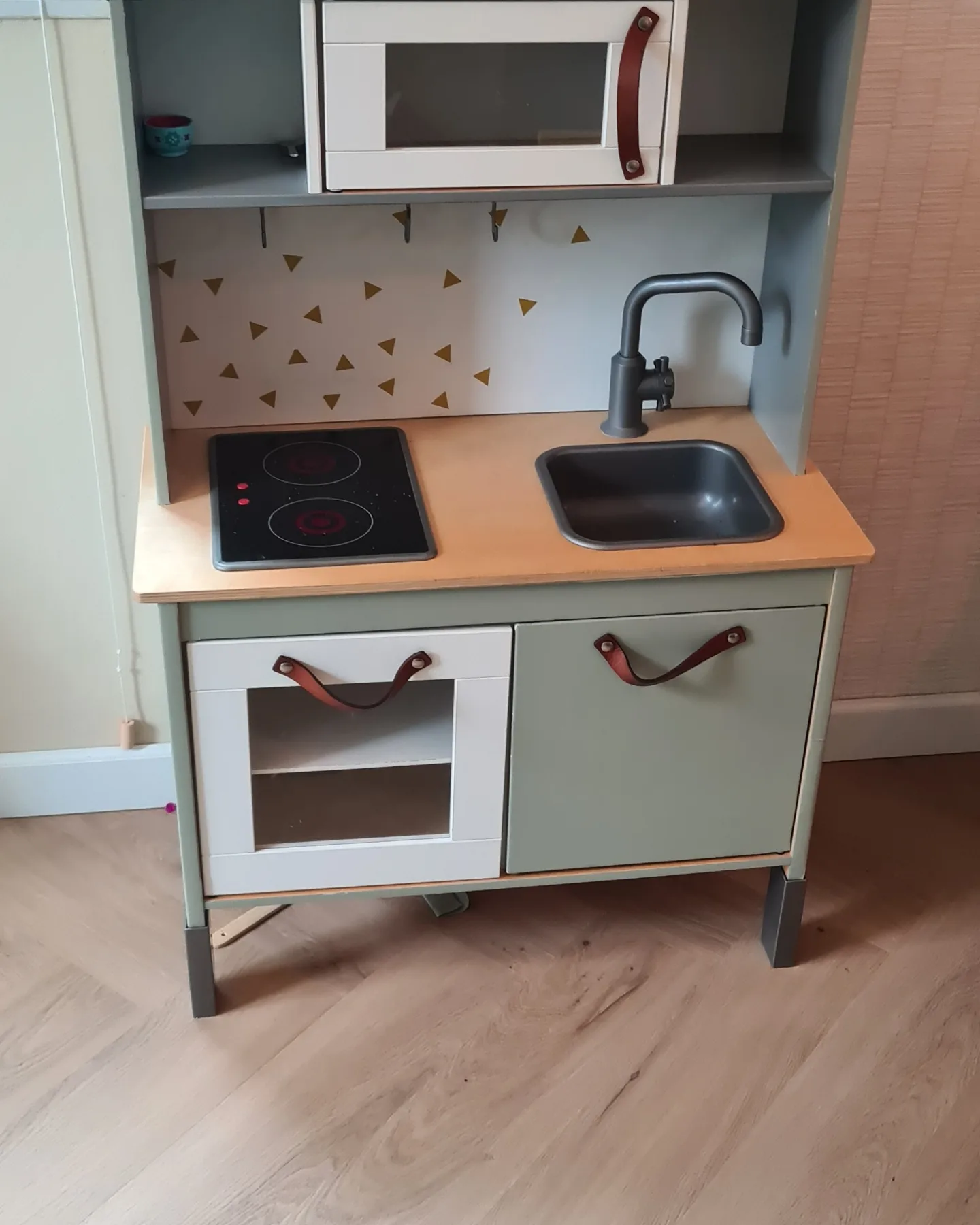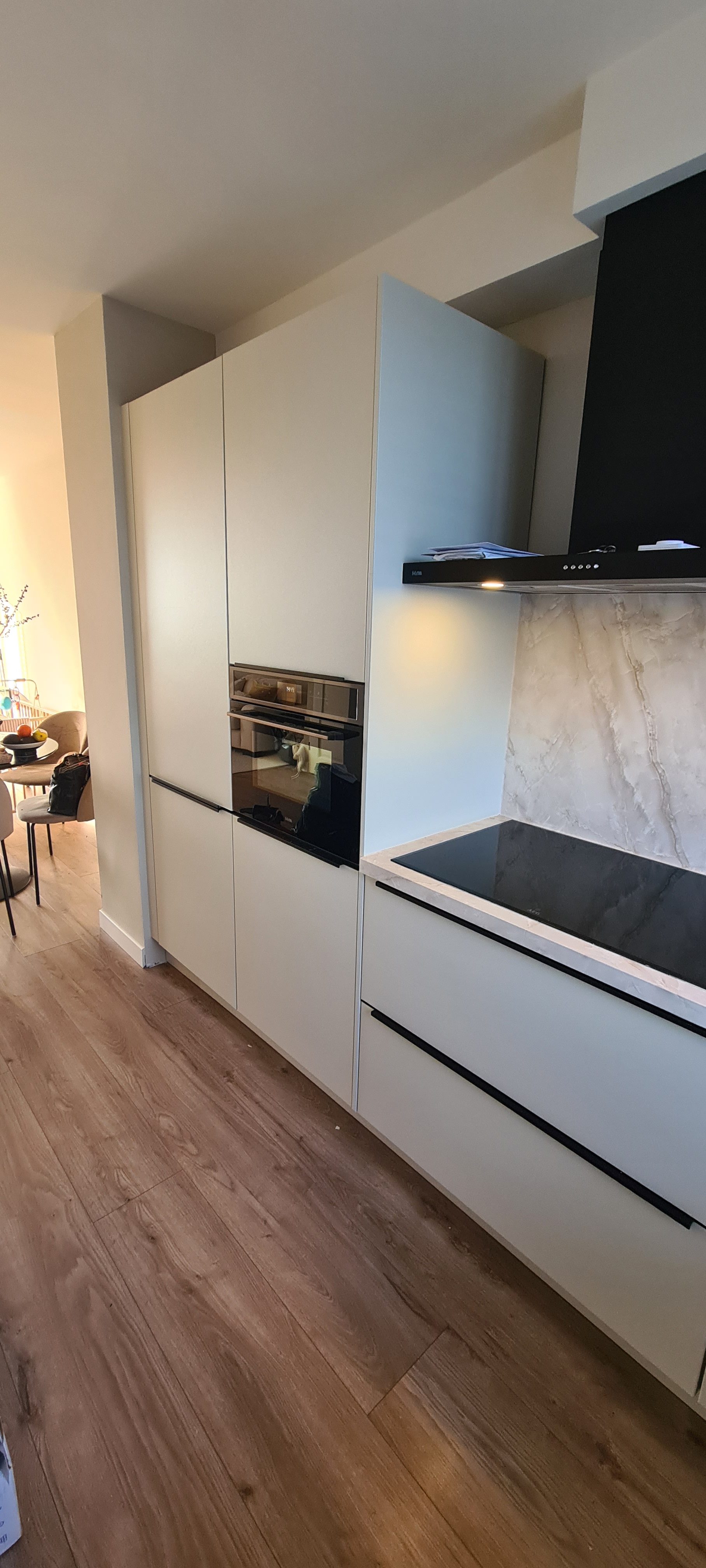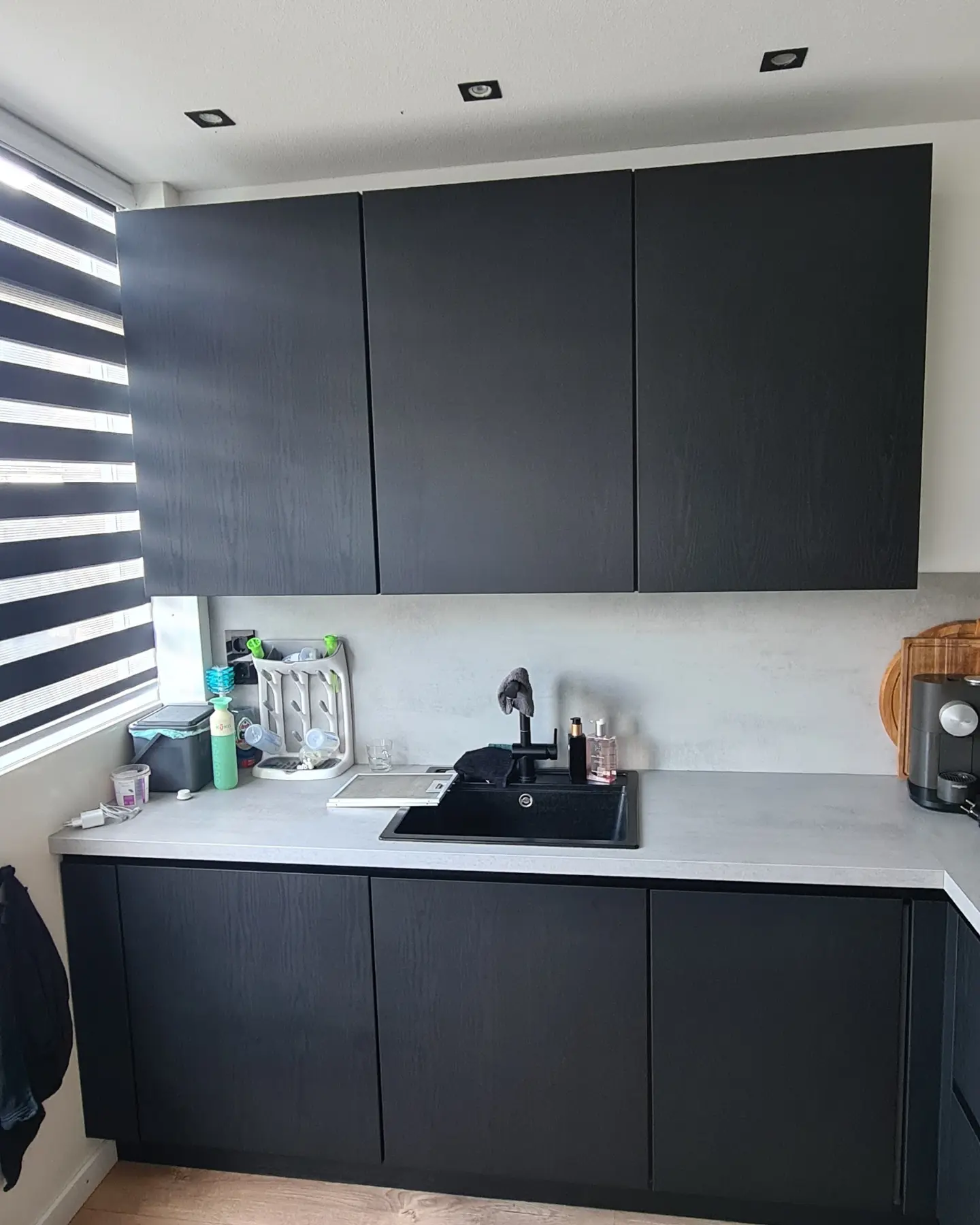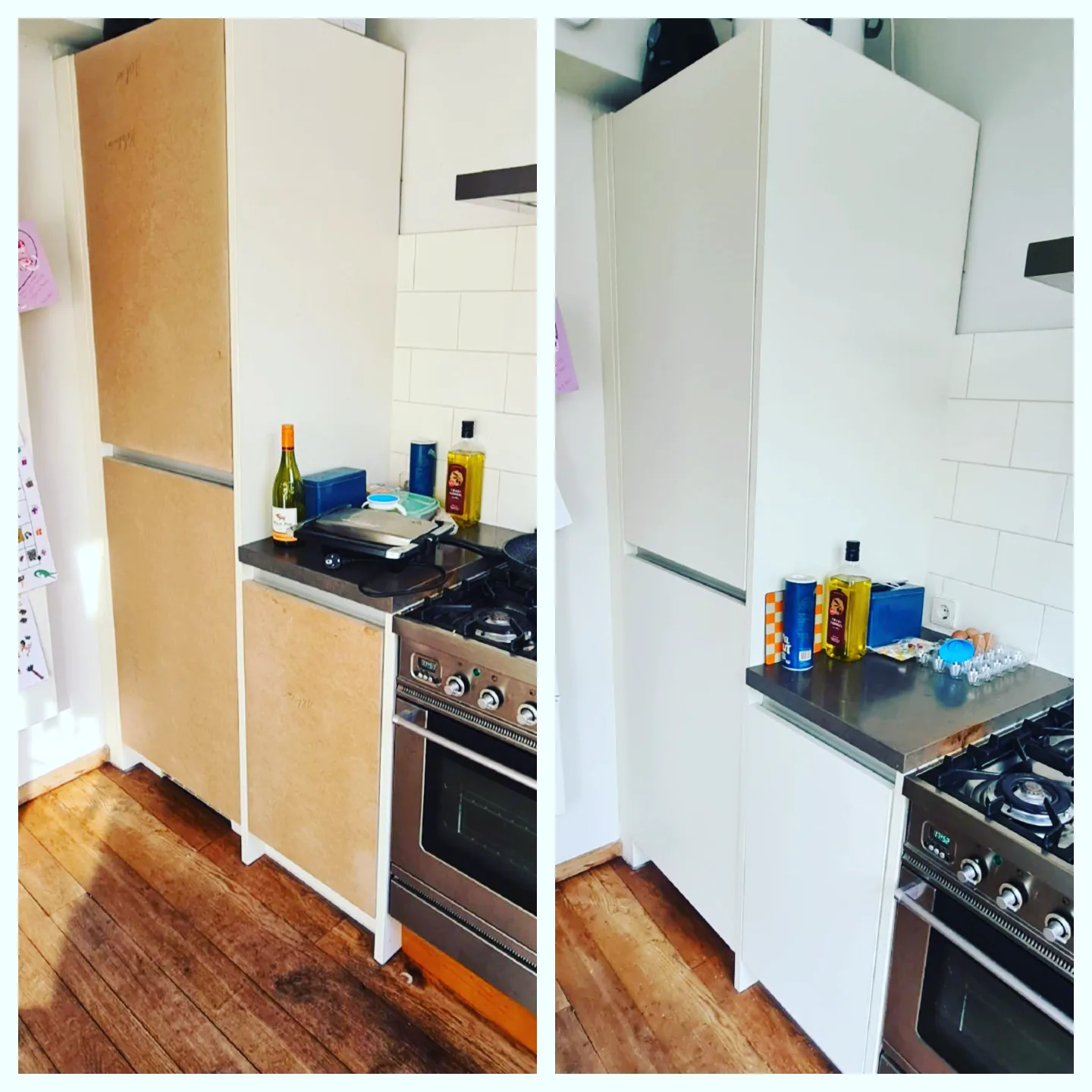 Hiernaast is houtnerffolie gecombineerd waardoor de trap een trendy en frisse uitstraling krijgt.