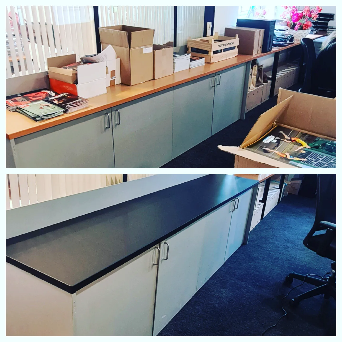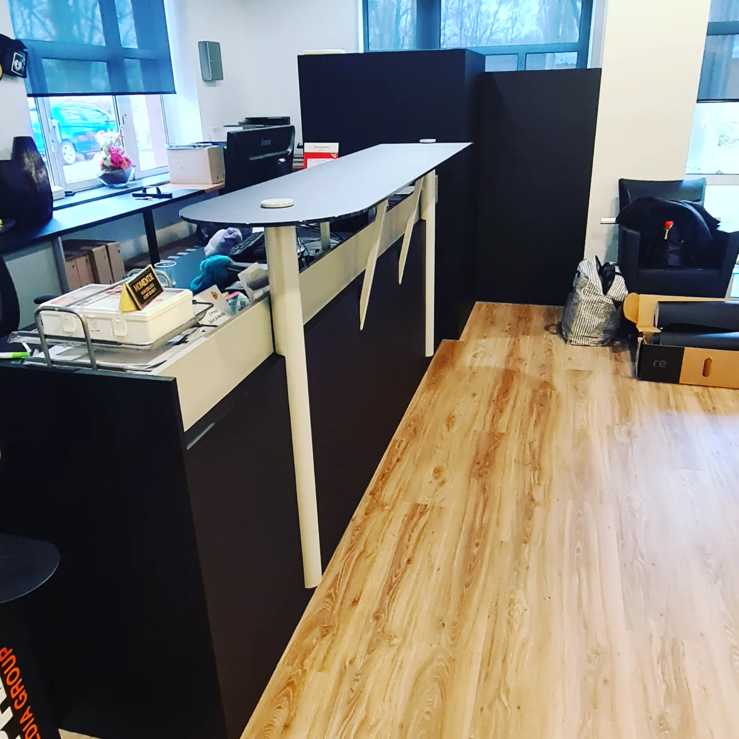 Interieurfolie kan ook worden gebruikt om een ​​balie of receptie in een kantoor of bedrijf te transformeren.